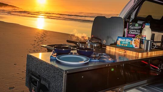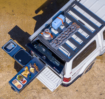 The Slide Kitchen slots right in and can be accompanied by any of ARBs roller (RF), mid-height (RFH) or full height drawers (RD/RDRF), and then finished off neatly with their existing range of vehicle-specific side panels.