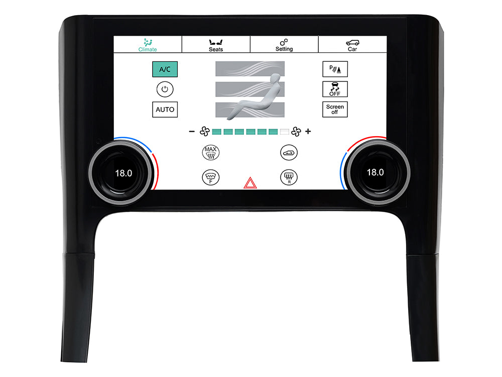 Upgrade your Range Rover Sport's interior with these factory-style touchscreen climate control panels which are designed to bring modern functionality and a premium look. Inspired by newer vehicle designs, these units deliver a sleek visual upgrade while retaining full compatibility with your original climate control system. Suitable for both left and right hand drive vehicles.