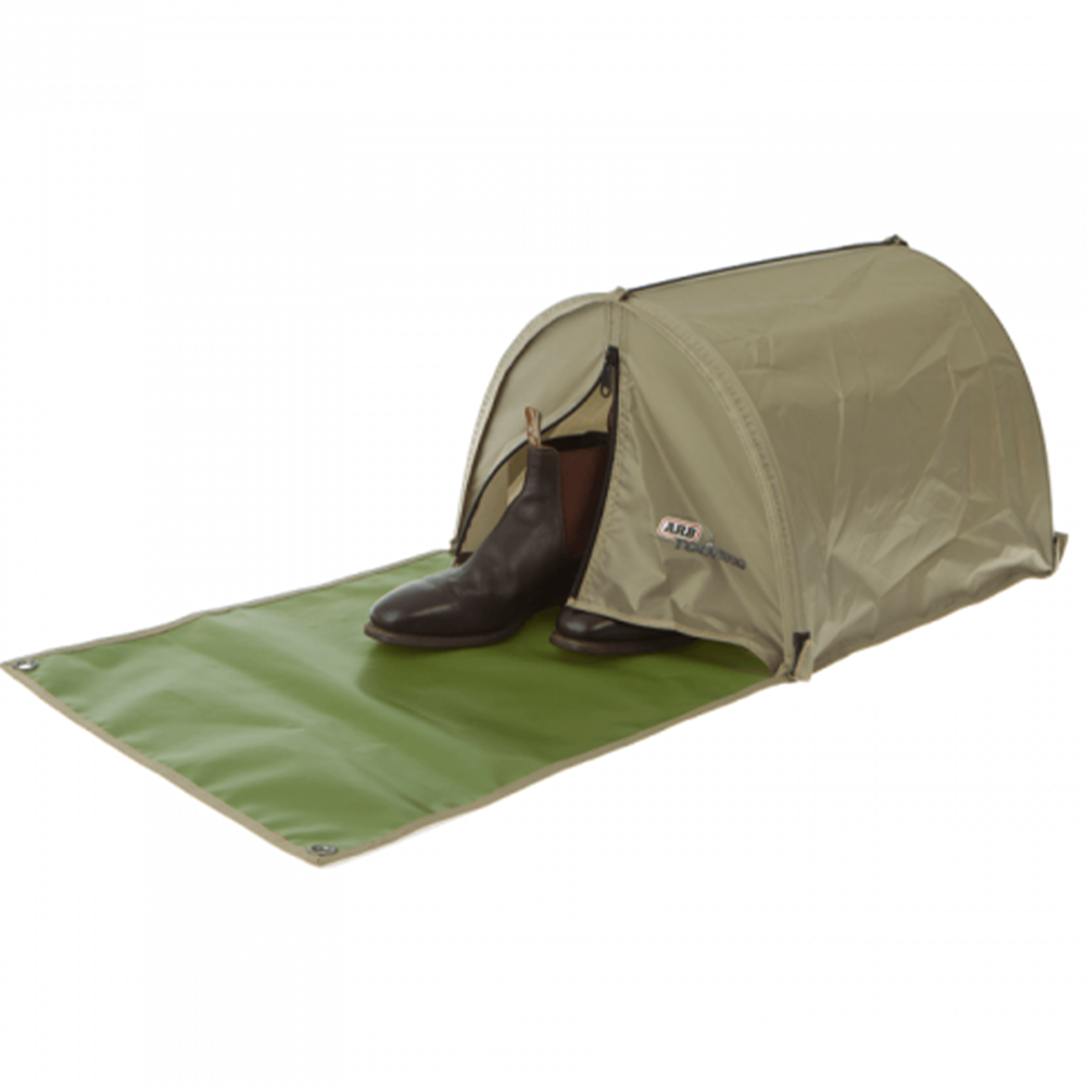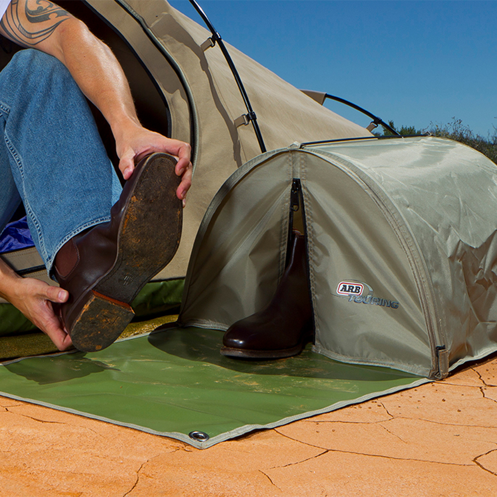 When designing the new range of SkyDome swags, the boot mat found on numerous other swags was intentionally omitted due to the nature of these flaps getting dirty and soiling the swag when rolled up. The BootSwag is ARB’s creative solution to this challenge and features a zippered front flap, large boot mat and a dome section made from waterproof Oxford fabric. Being a standalone item, the BootSwag can also be used with other touring products including the ARB roof top tents where it can be placed at the foot of the ladder.