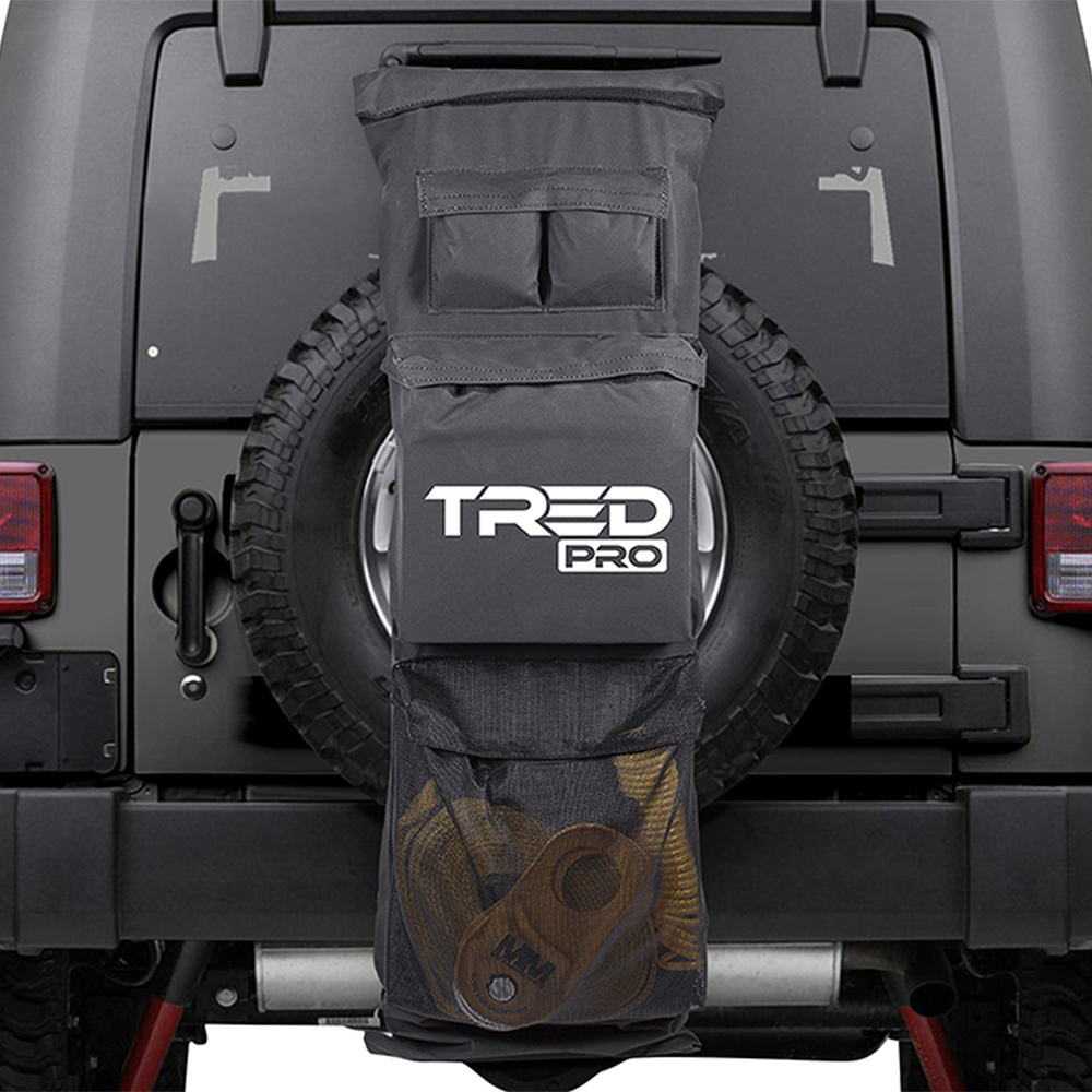 The TRED Pro Carry Bag is made from durable and waterproof canvas material. It features various gear storage pockets for your tow straps, shackles, winch blocks and anything else you need to carry. The extra-large front pocket is made from high quality UV stabilised mesh, great for keeping anything you need to dry out and doubles as a great rear wheel trash bag. The webbing straps will attach the bag to your rear wheel carrier, roof racks and anywhere else you can strap it down, they also double as great backpack straps. There is no other recovery gear bag like it.